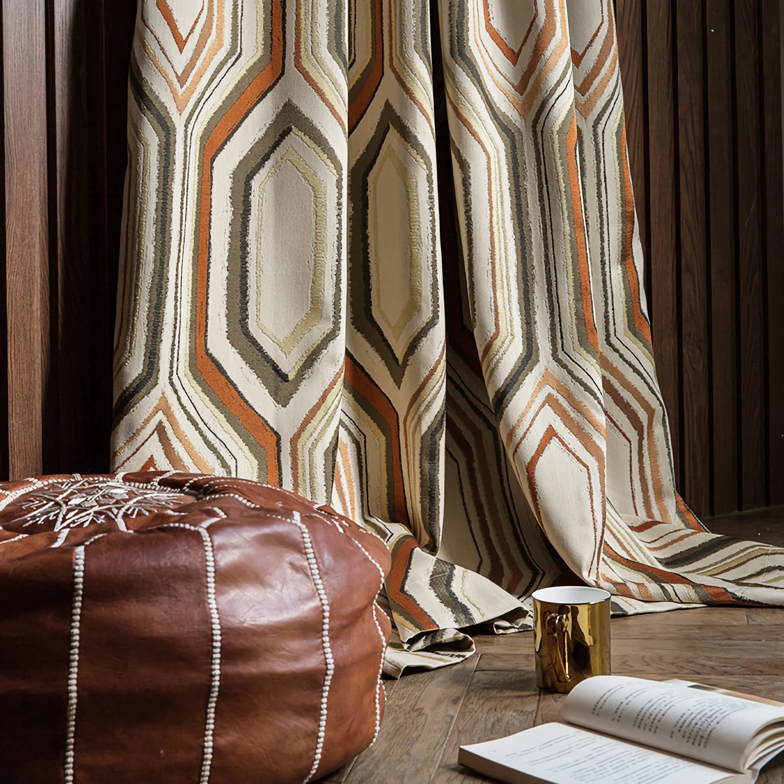 A pair of Custom Curtain Panels, Jacquard Geometric Pattern Curtains, Window Curtain Draperies, Bedroom/Curtains for living room