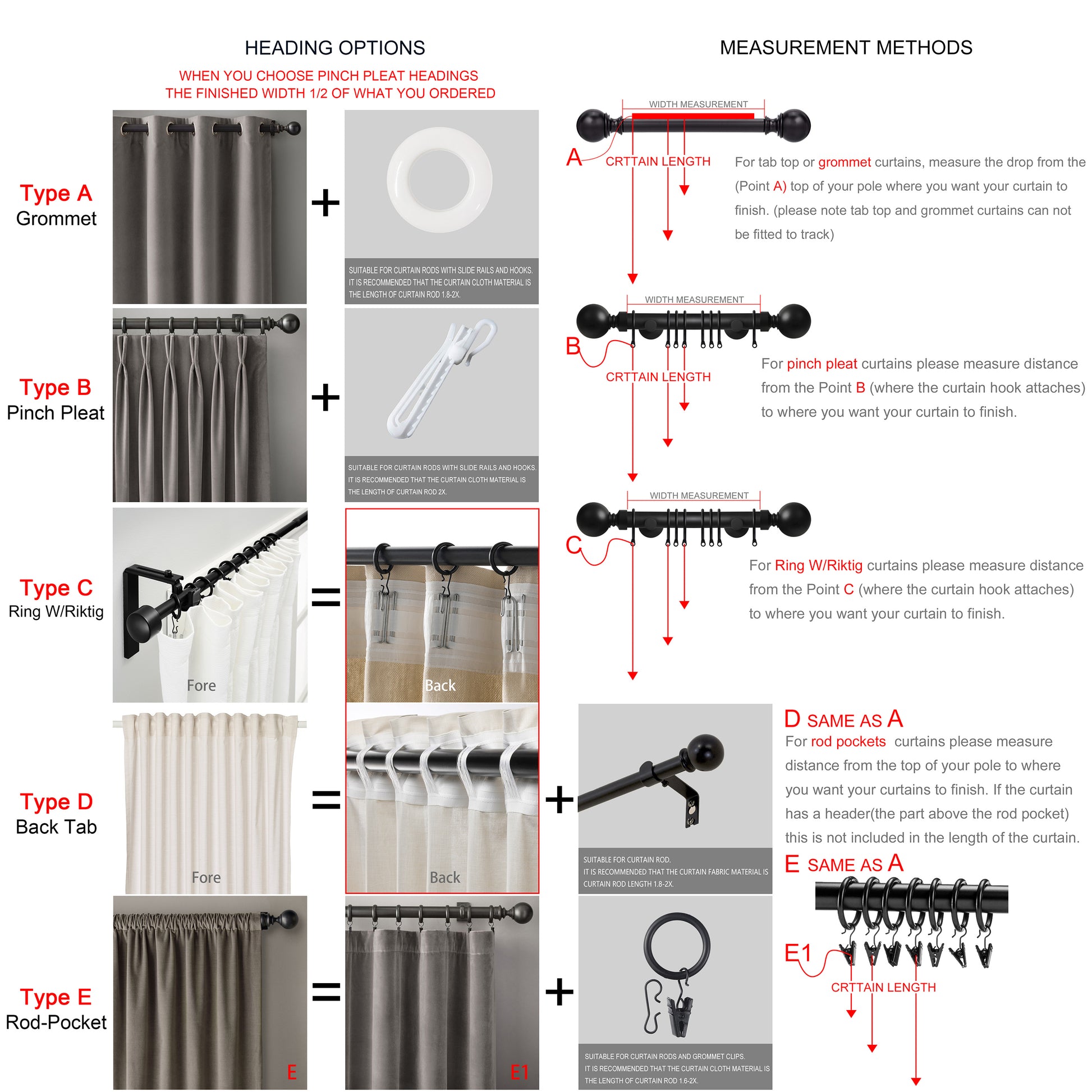 • Heading options we offer: Grommet, Versatile pleat, Pinch pleats, Back-tab, Rod-pocket, Pencil pleats. You can choose according to your personal preferences.