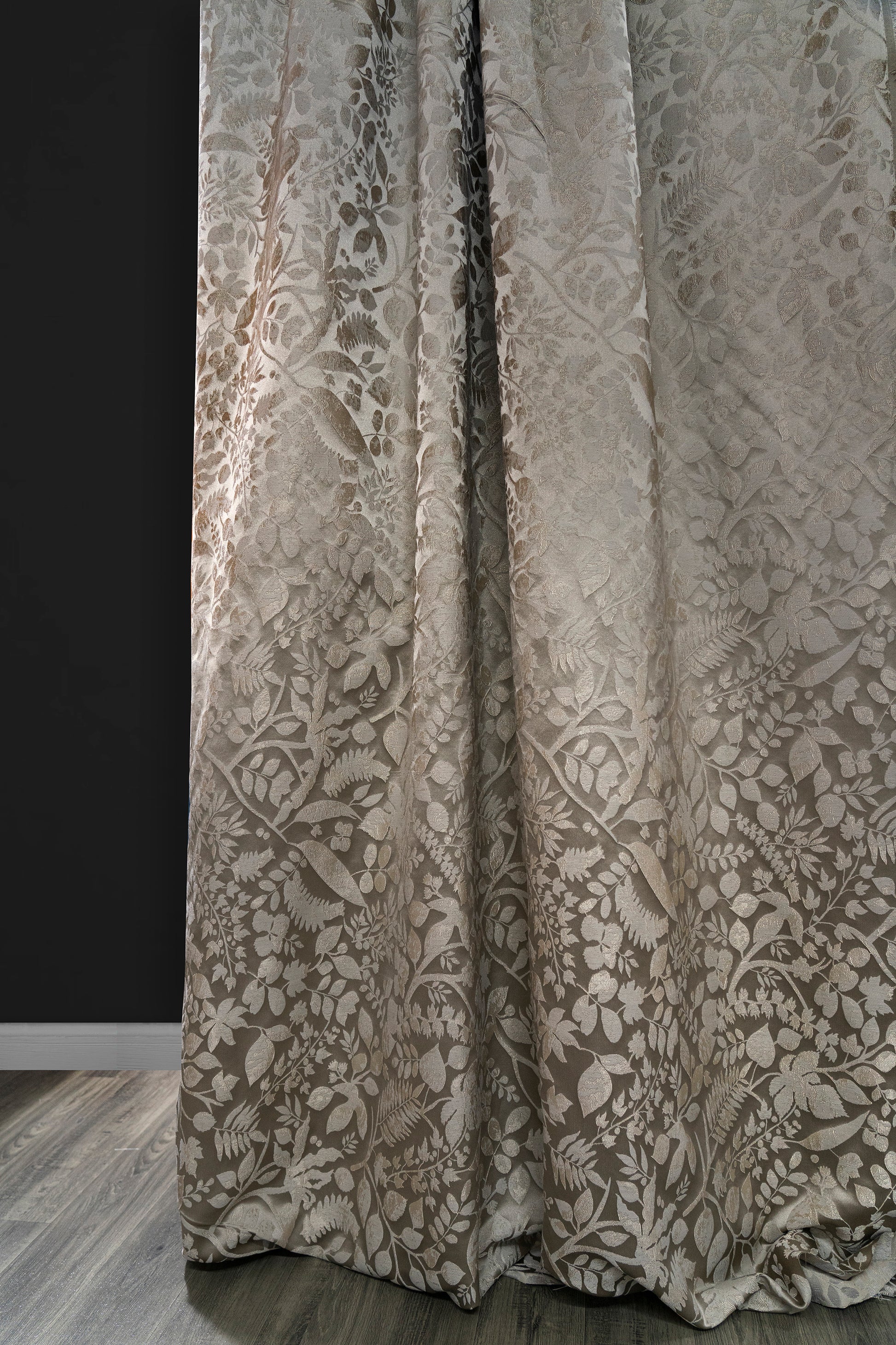 A Pair of Champagne Luxury Embroidered Botanical Floral Jacquard Curtains Draperies-Bedroom/Curtains for living room-Custom Curtains Panels