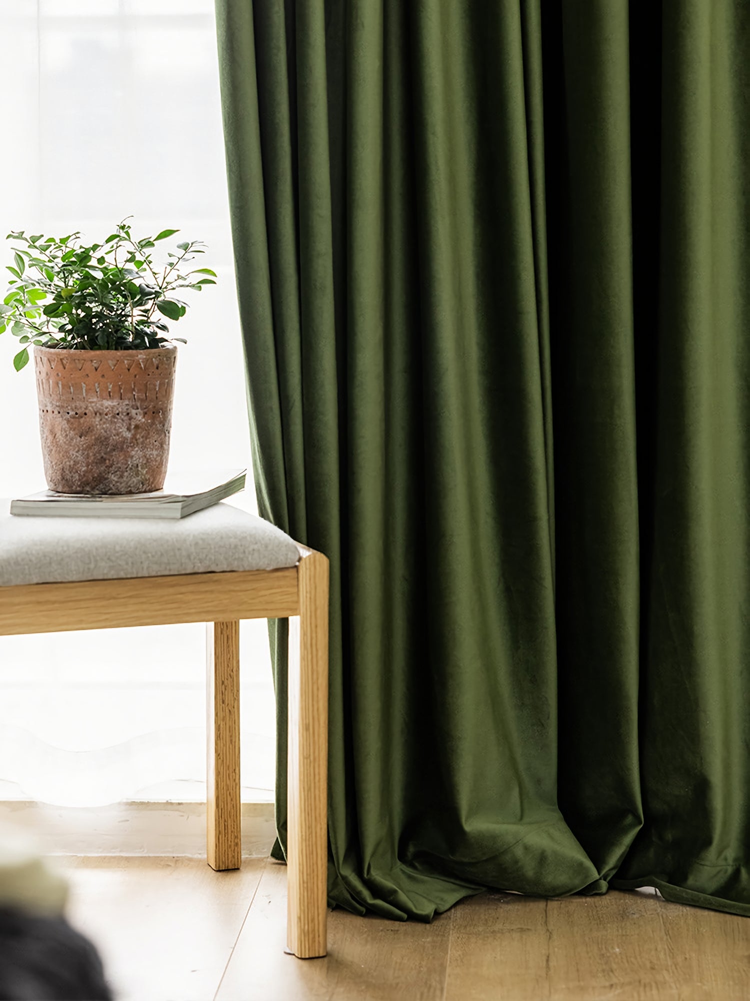 • Ironing the front of velvet is generally not recommended to avoid damaging its textured pile. If de-wrinkling is necessary, use a steam iron and iron from the backside of the velvet curtain while hanging.