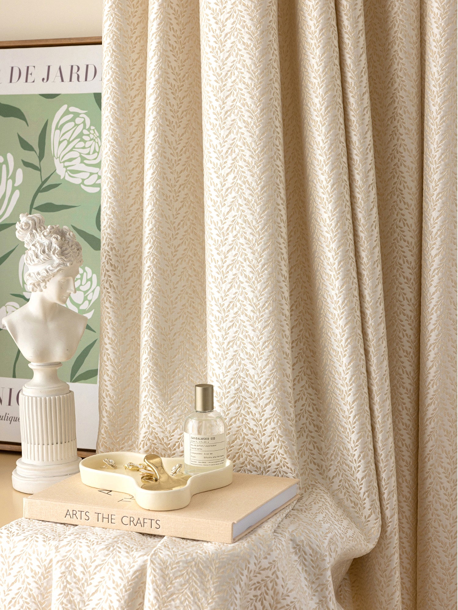 A Pair of Boho Plant Floral Beige/Cream Jacquard Curtains Panel /Window Curtains ,Bedroom Curtains for Living Room, Custom curtains