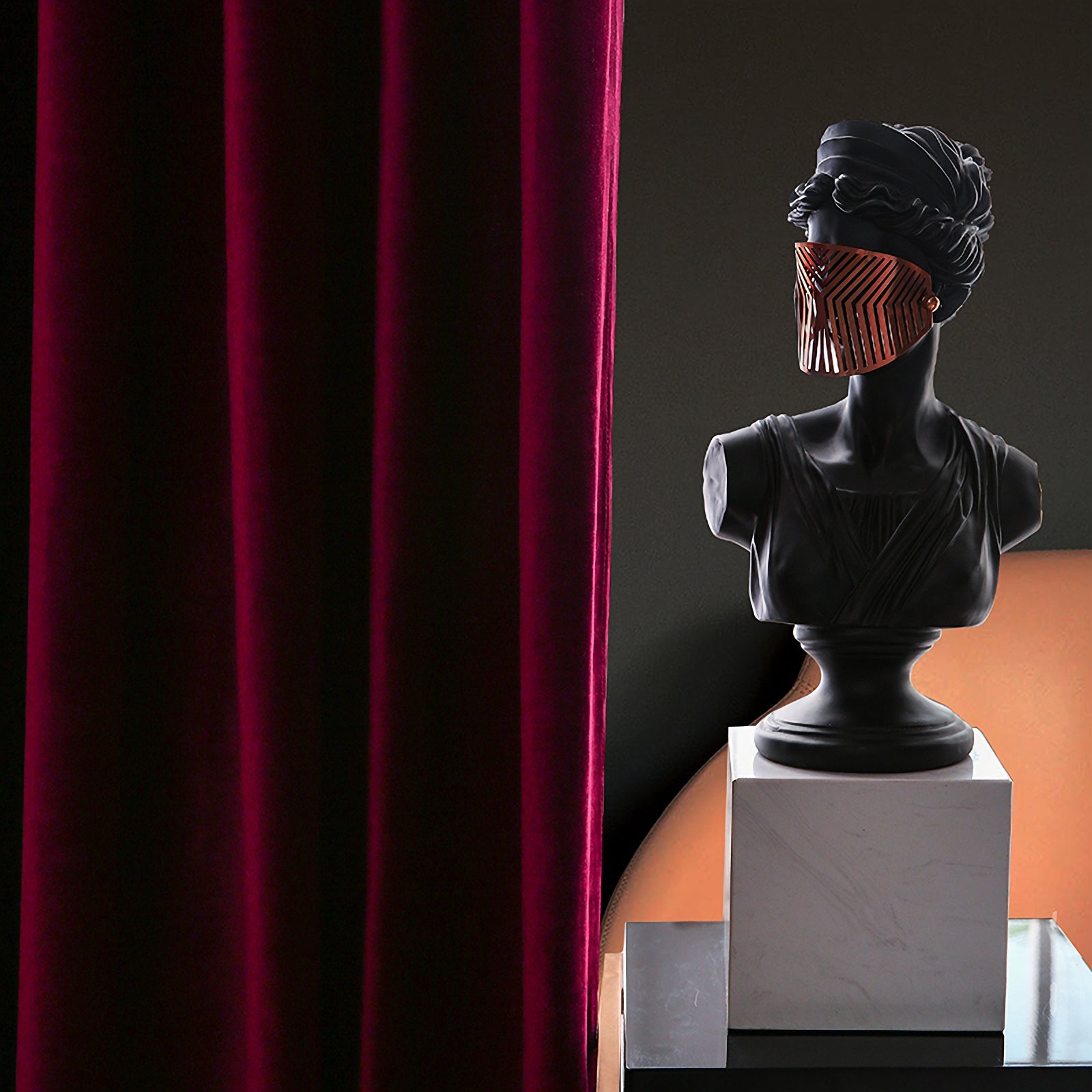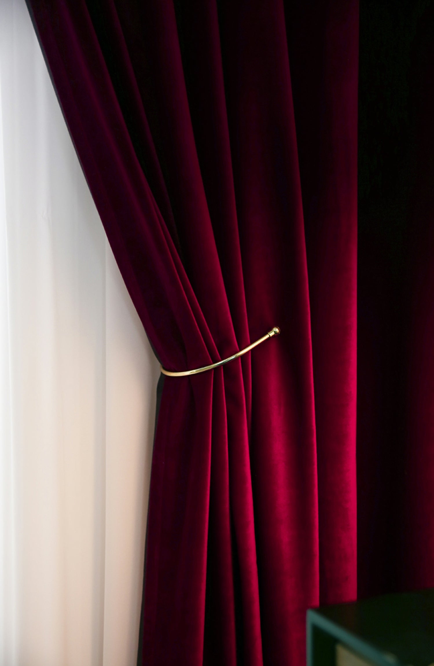 • Ironing the front of velvet is generally not recommended to avoid damaging its textured pile. If de-wrinkling is necessary, use a steam iron and iron from the backside of the velvet curtain while hanging.