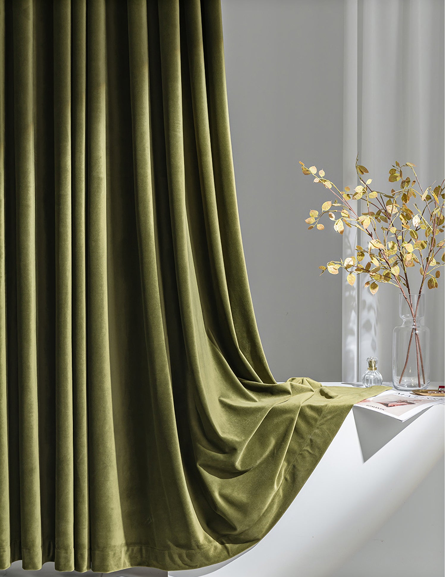 Olive Green Matte Velvet Curtains, Custom Curtain Panels ,Moss Green Curtains, Bedroom,Green Drapes Window Dressing Living Room Curtains