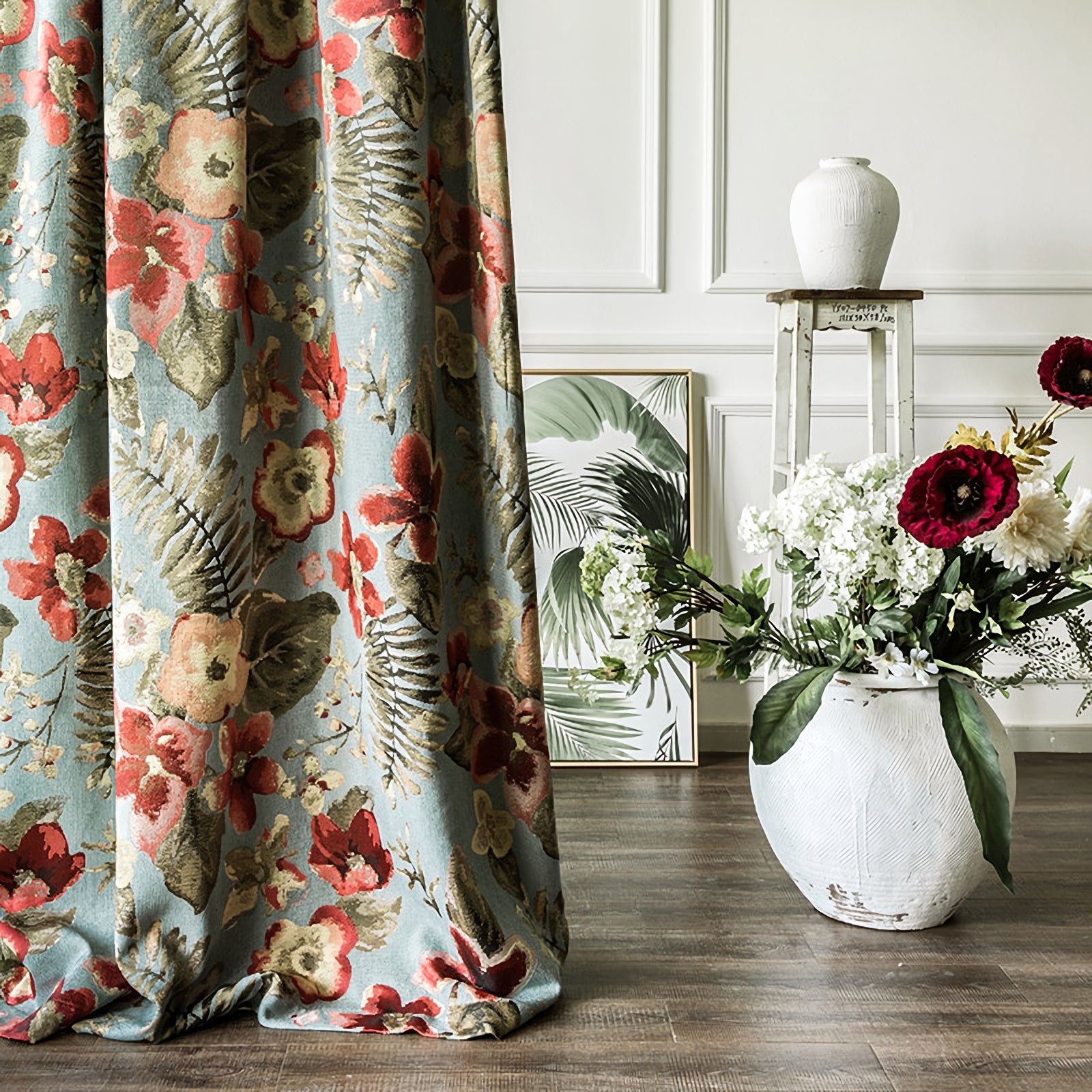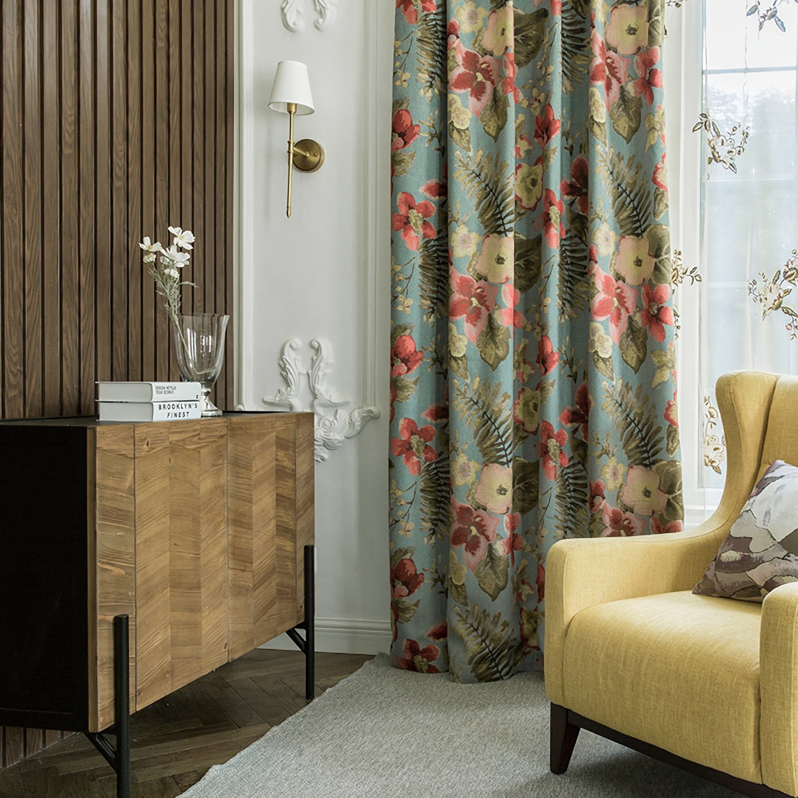 Pair of Blue Gorgeous Flowers/Floral Embroidered Curtain Panel,60% Cotton Blend Jacquard Curtains Drape, Bedroom Living Room Custom Curtains