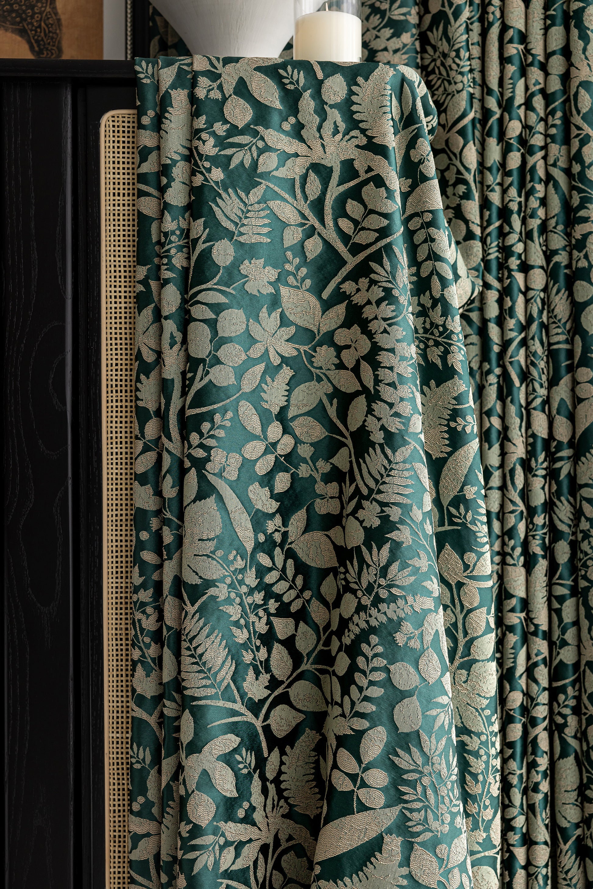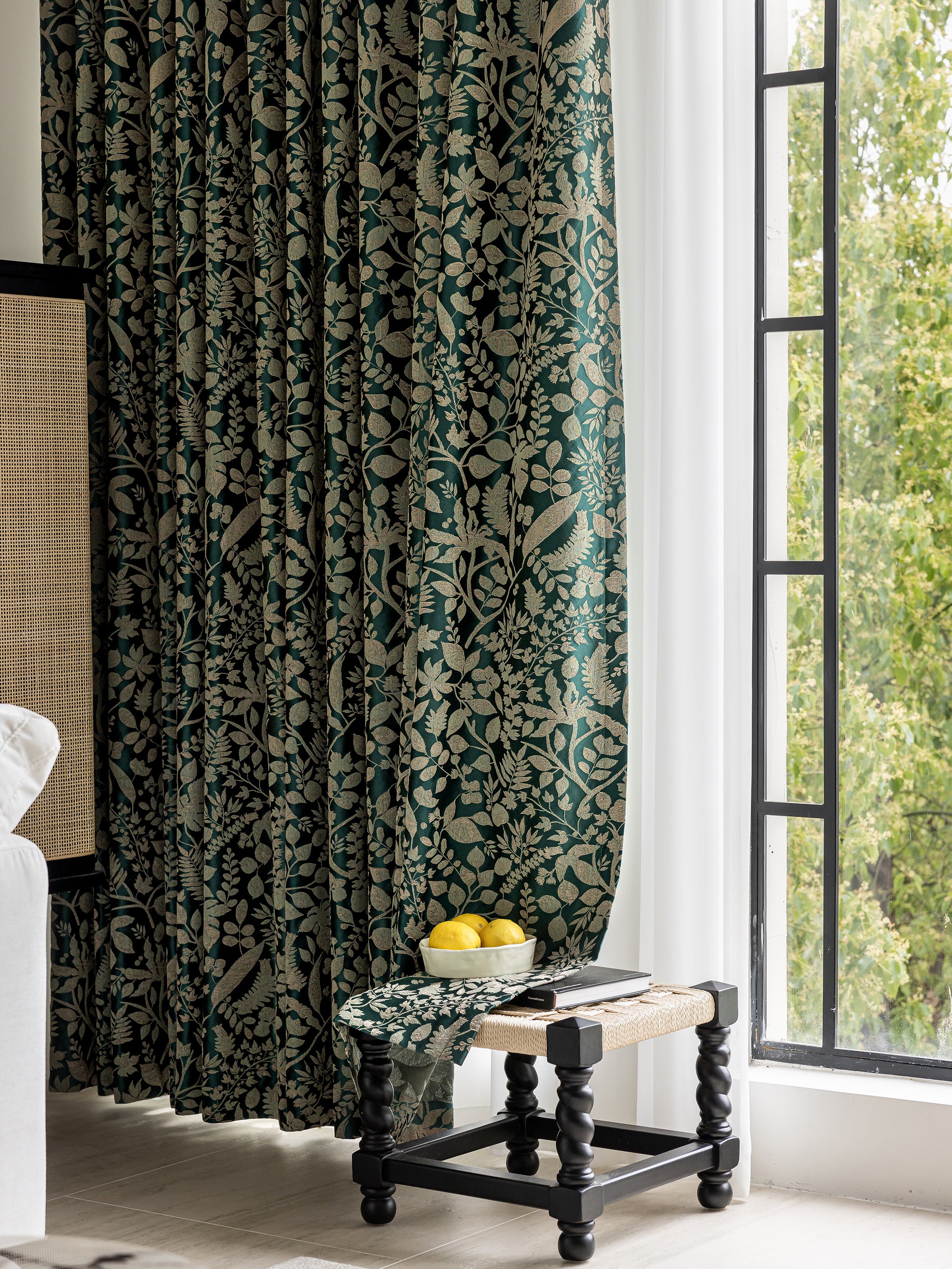 Pair of Emerald /Deep Green Luxury Thread Botanical Floral Embroidery Curtains for Bedroom, Curtains for Living Room Panels, Custom Curtains