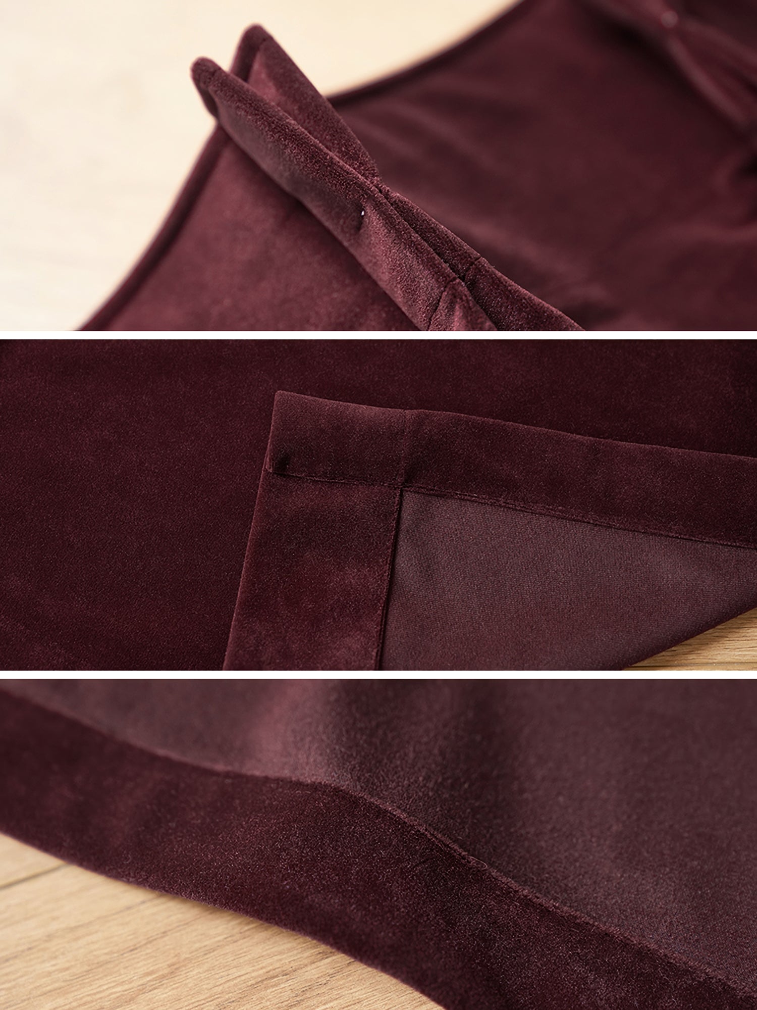 • Ironing the front of velvet is generally not recommended to avoid damaging its textured pile. If de-wrinkling is necessary, use a steam iron and iron from the backside of the velvet curtain while hanging.