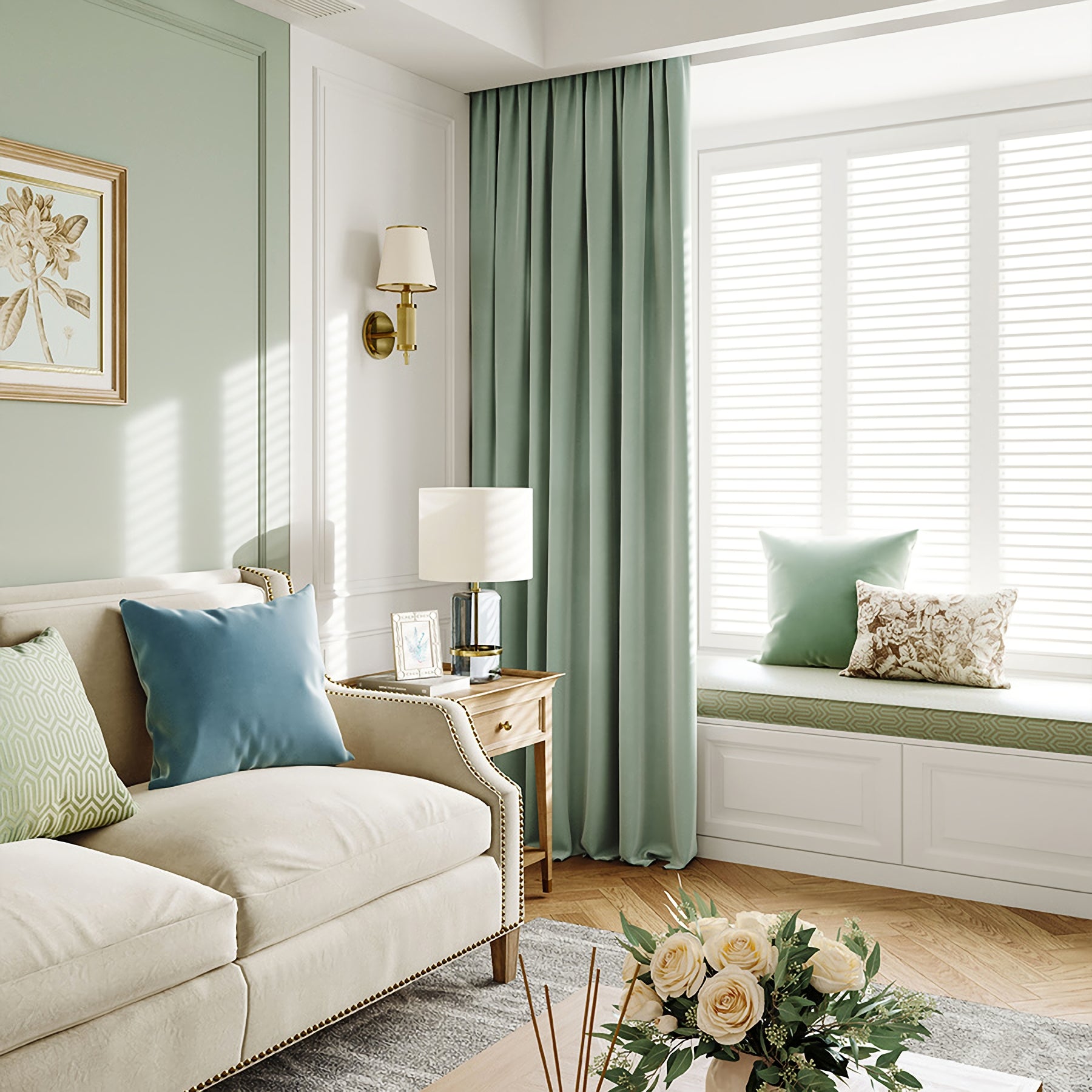 Pair of Mint Green Velvet Curtains, Bedroom Velvet Curtains, Living Room Pepper Mint Green Velvet Curtains, Custom Curtains