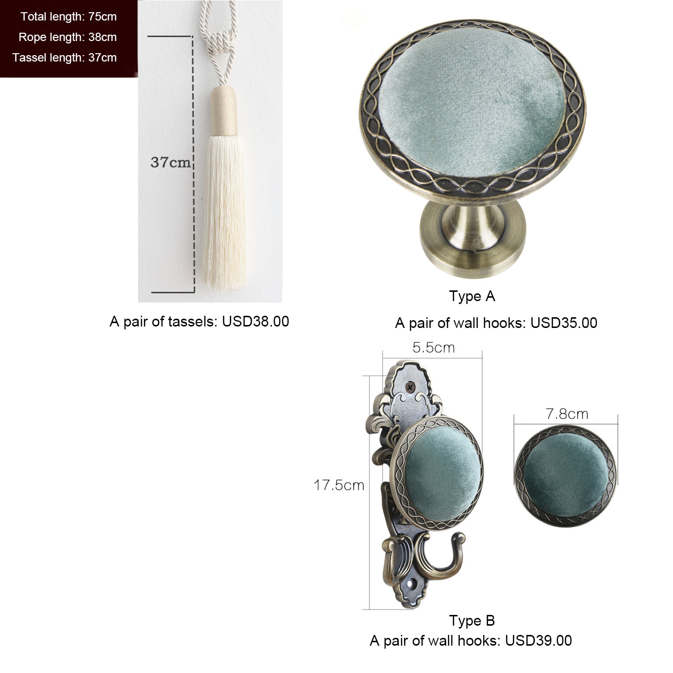 I got the entire set, wall hooks, and tassels included and i looooove all of it. the velvet looks and feels beautiful. there was writing on the fabric (?) and i messaged the seller who told me how to get rid of it very easily. it also got delivered sooner than i thought it would! very happy with this purchase :)