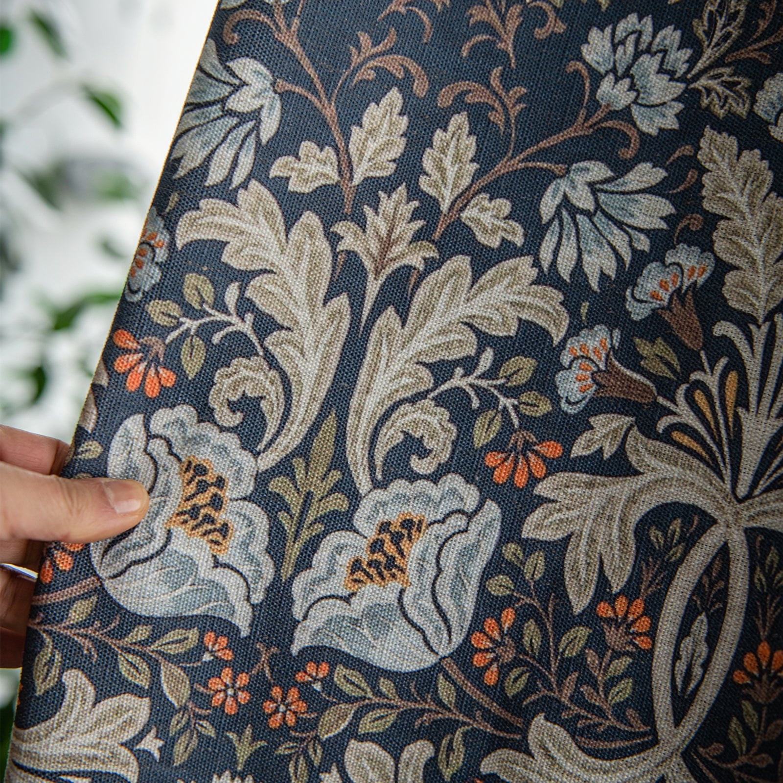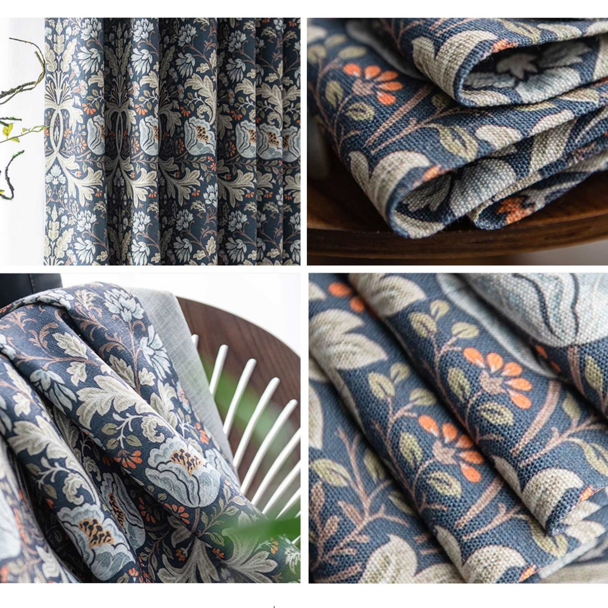Pair of Navy blue Plant Flower Print Pattern Victorian Curtain Panels, Rustic/Country style Bedroom/Curtains for living room, Custom Curtain