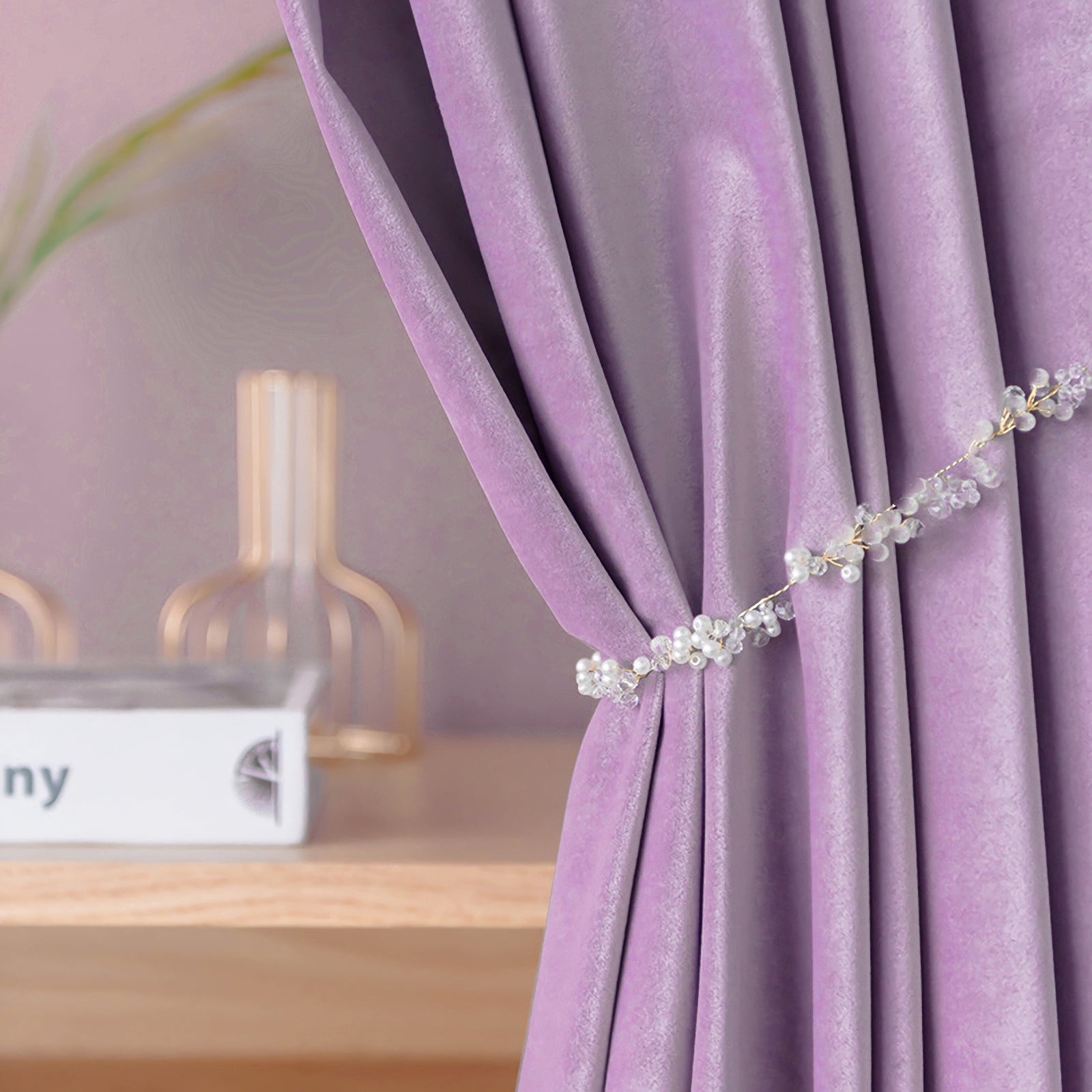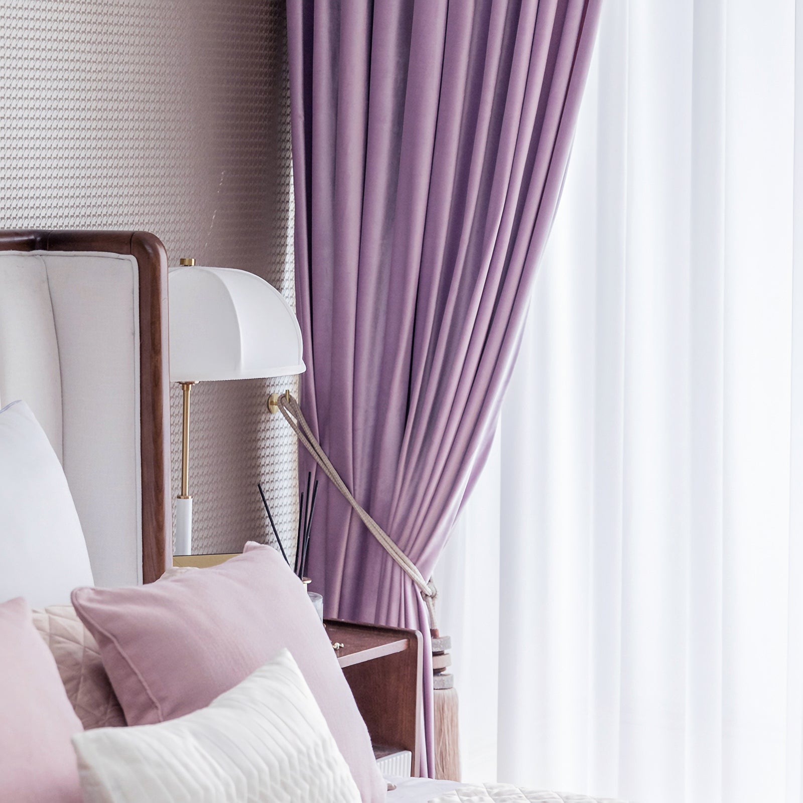 • Ironing the front of velvet is generally not recommended to avoid damaging its textured pile. If de-wrinkling is necessary, use a steam iron and iron from the backside of the velvet curtain while hanging.