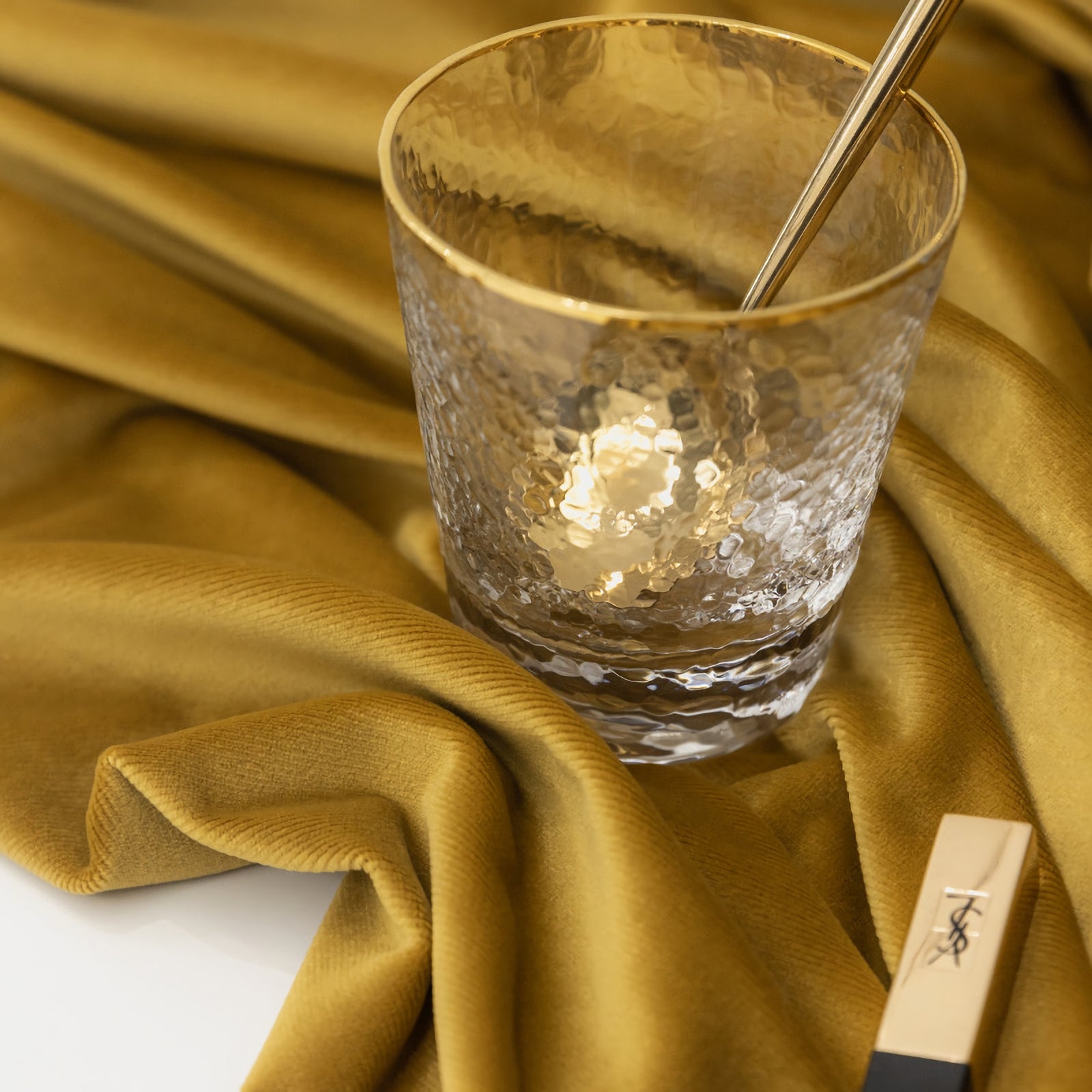 • Ironing the front of velvet is generally not recommended to avoid damaging its textured pile. If de-wrinkling is necessary, use a steam iron and iron from the backside of the velvet curtain while hanging.
