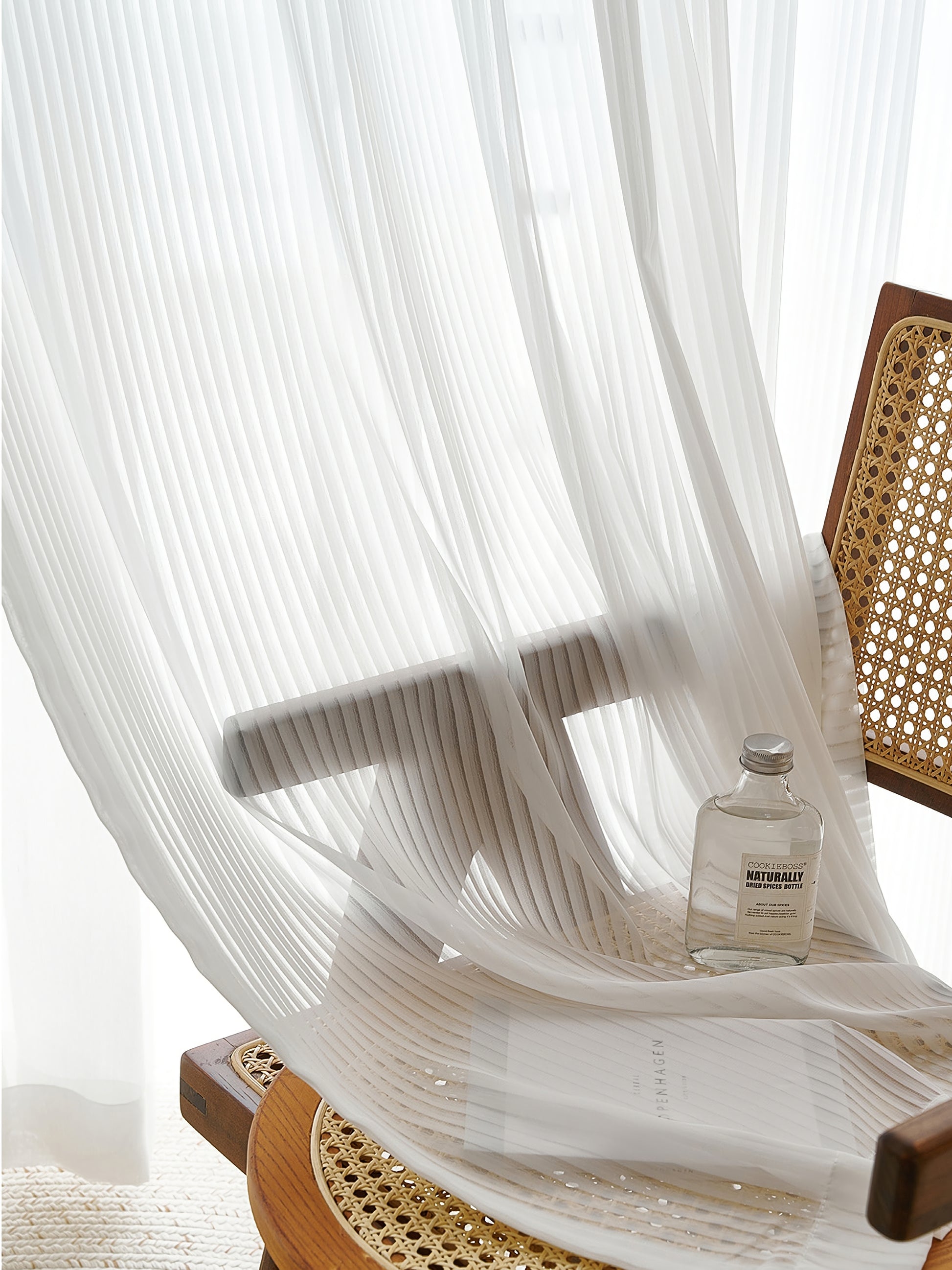 Pair of White Curtain, Striped venetian blind Yarn Sheer Voile Curtain Panel Bedroom/for Living Room Curtain ,Custom Size Sheer Panels