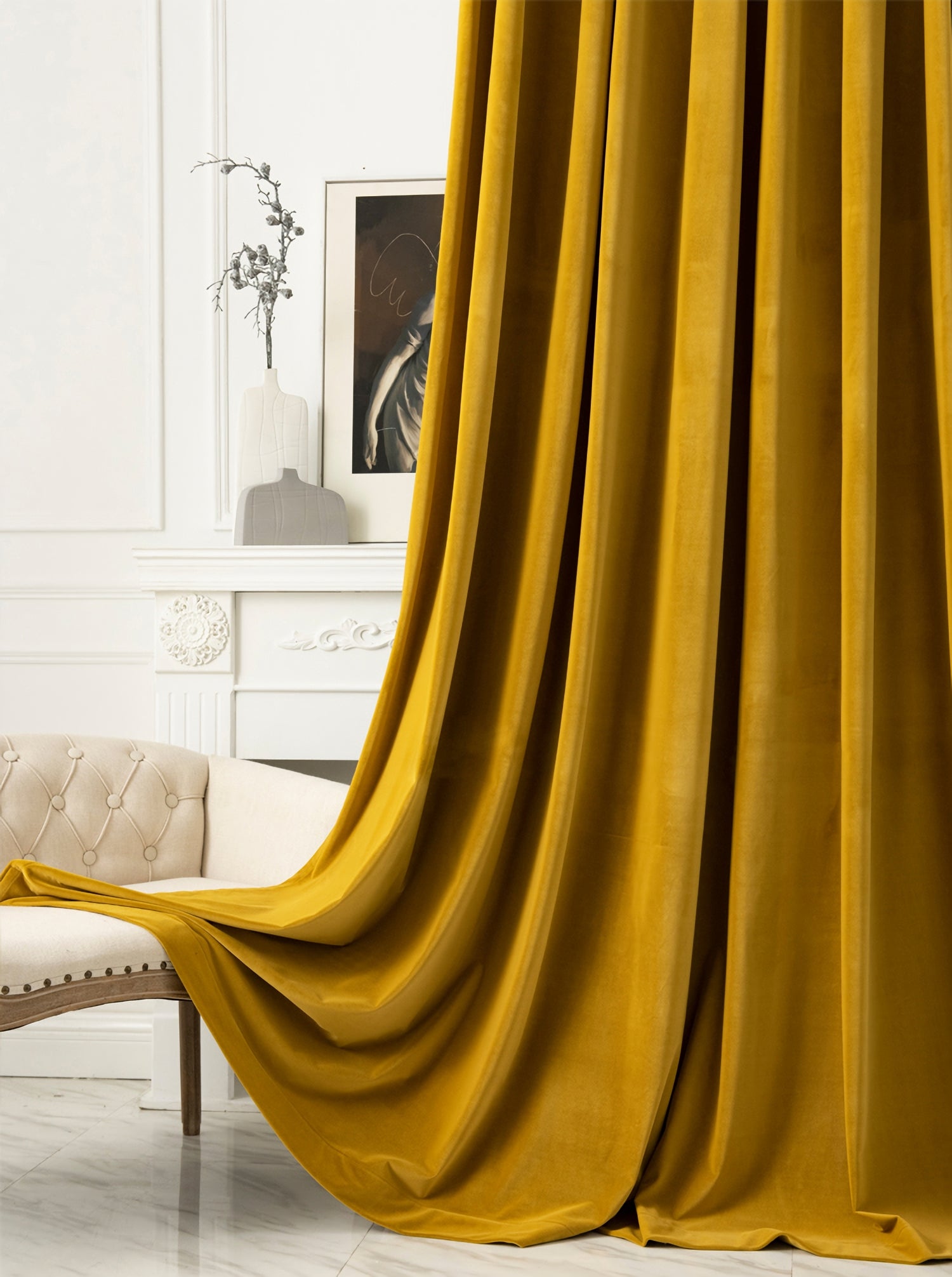 Pair of Yellow velvet curtain, Bedroom/ Living Room Velvet Curtains, Grommet or hook/ring hanging. 25''-50''-75''-100'' width panels.