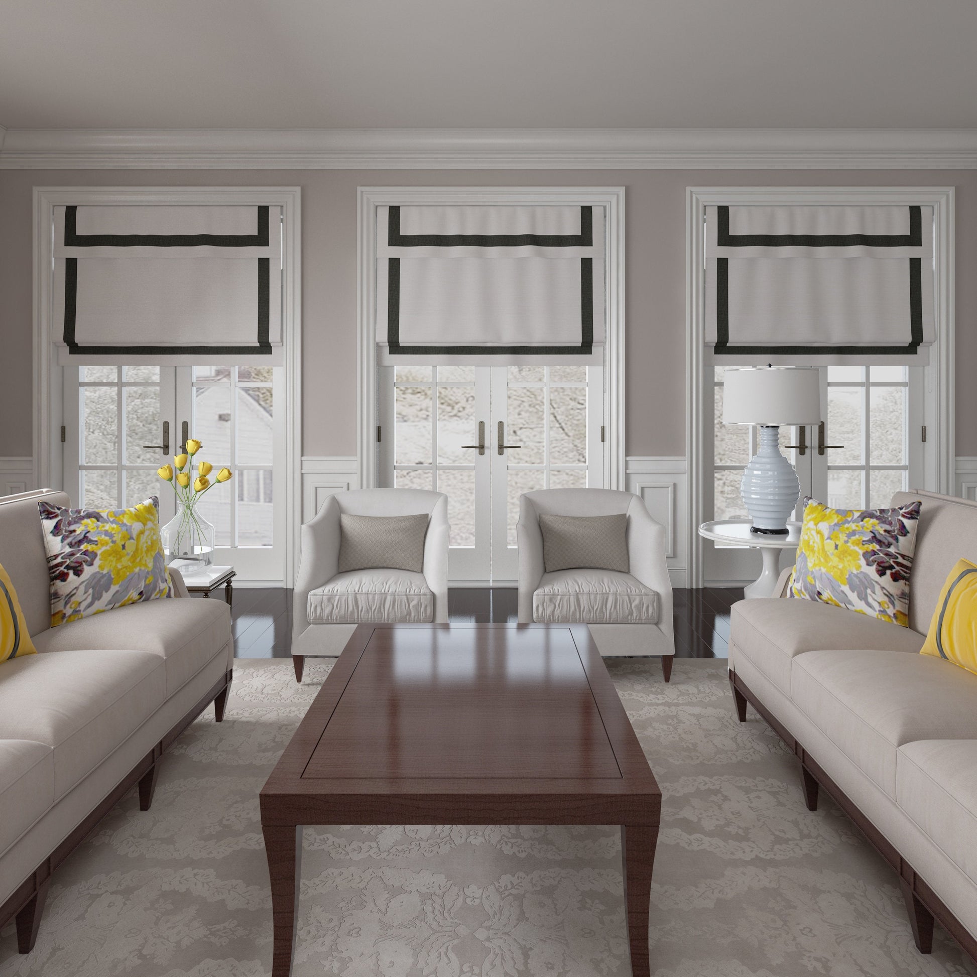 Roman Shades with Trim for Doors Windows/ kitchen, Ivory Flat Roman Shades Valance Striped Borders, Hardware Included Custom Size Shades