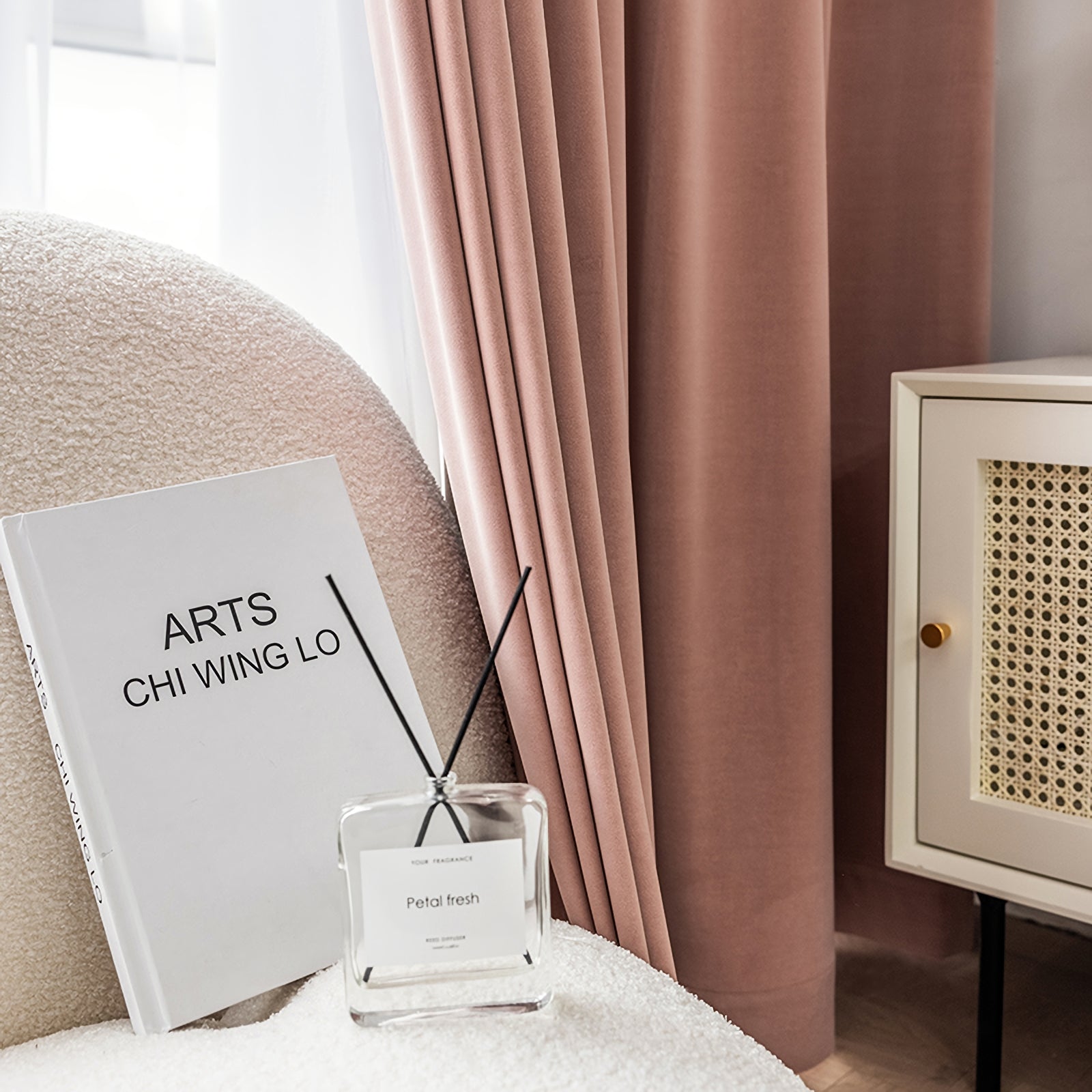 • Ironing the front of velvet is generally not recommended to avoid damaging its textured pile. If de-wrinkling is necessary, use a steam iron and iron from the backside of the velvet curtain while hanging.